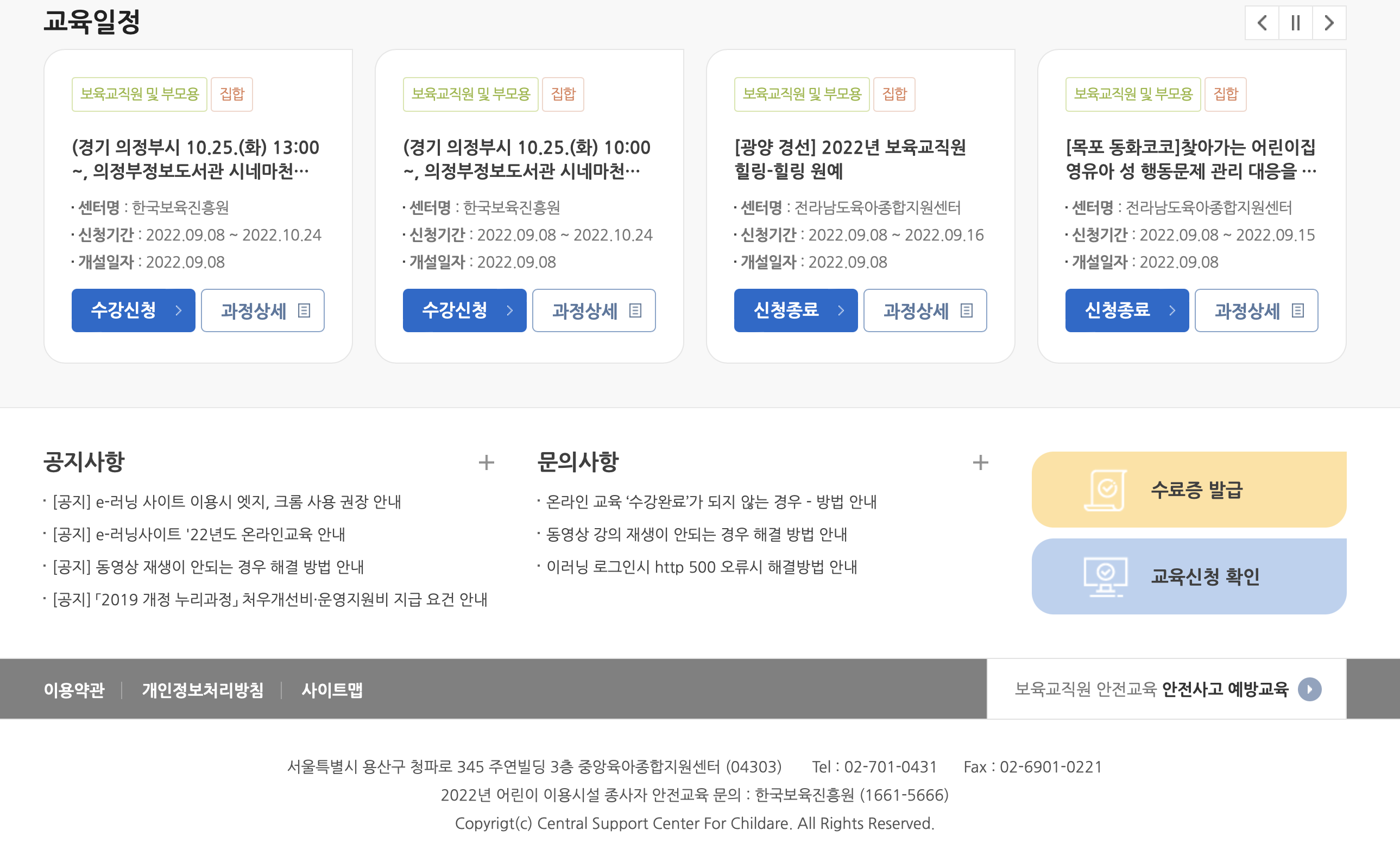 종합육아종합지원센터 e-러닝 (https://lms.educare.or.kr/lms/intro.edu)