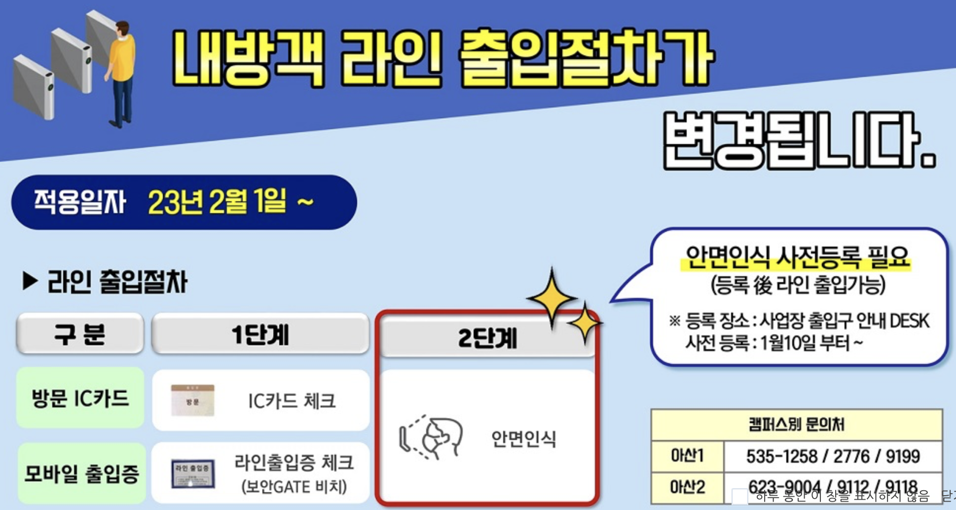2023년 2월 1일 부터 삼성디스플레이 내방객 라인 출입절차가 변경됩니다.