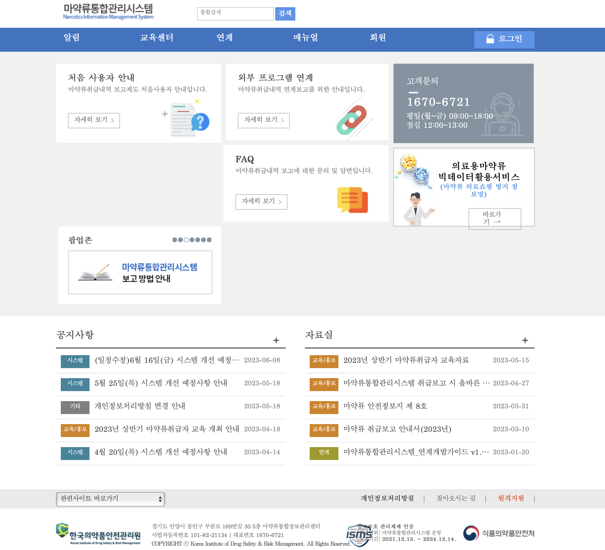 마약류 통합관리시스템은 주로 다음과 같은 주요 기능을 제공