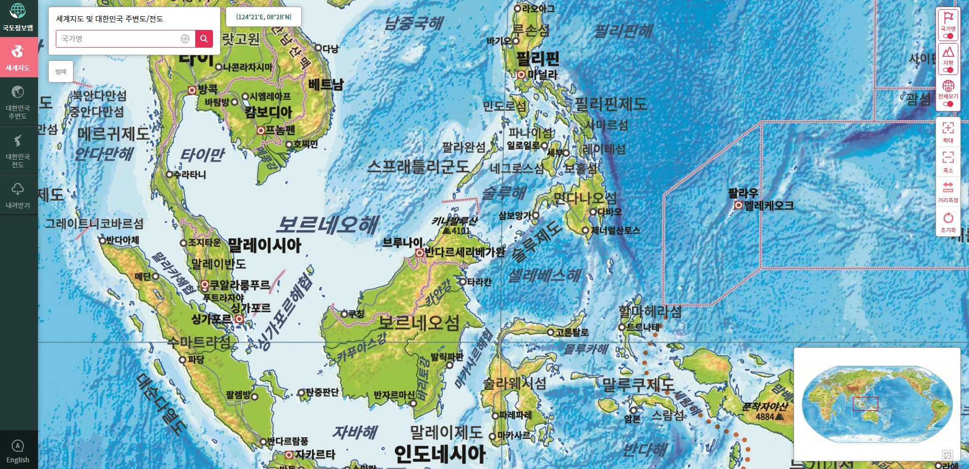 국토정보플랫폼 국토정보맵 세계지도 크게 보기