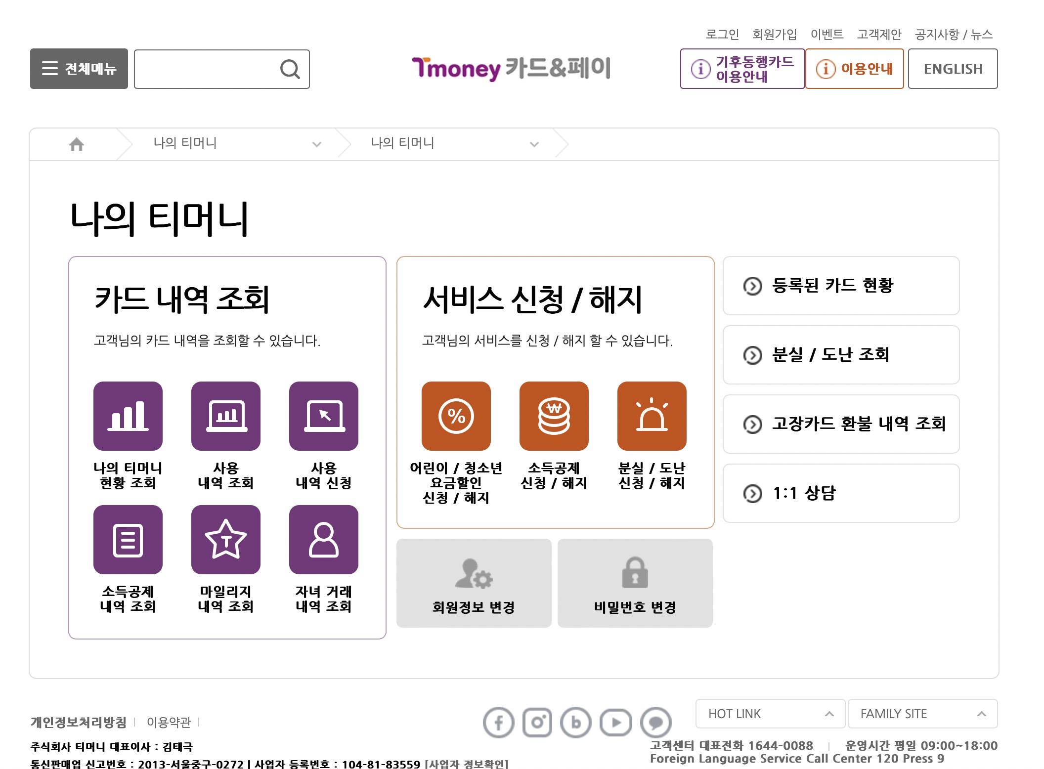 티머니 홈페이지 회원 및 비회원으로 모두 등록이 가능합니다.