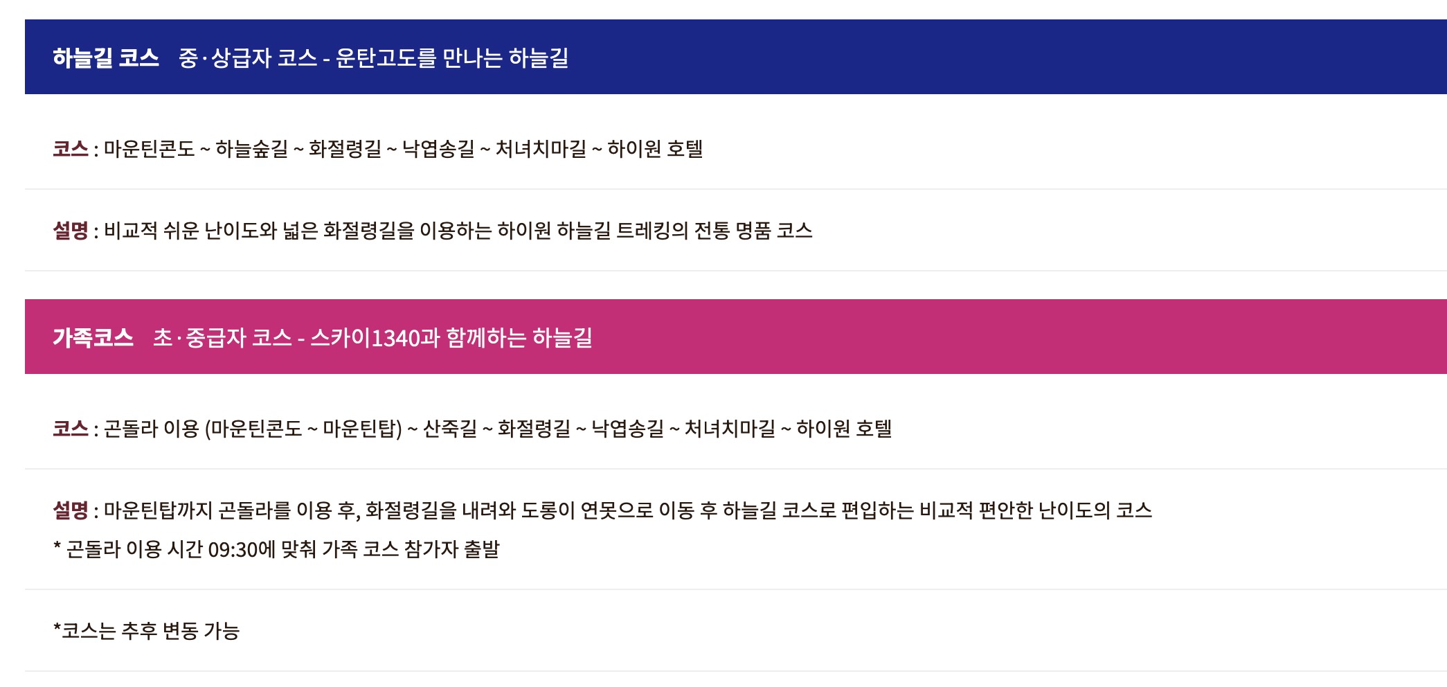 자세한 사항은 하이원 트레킹 공식 웹사이트를 통해 확인하실 수 있습니다.